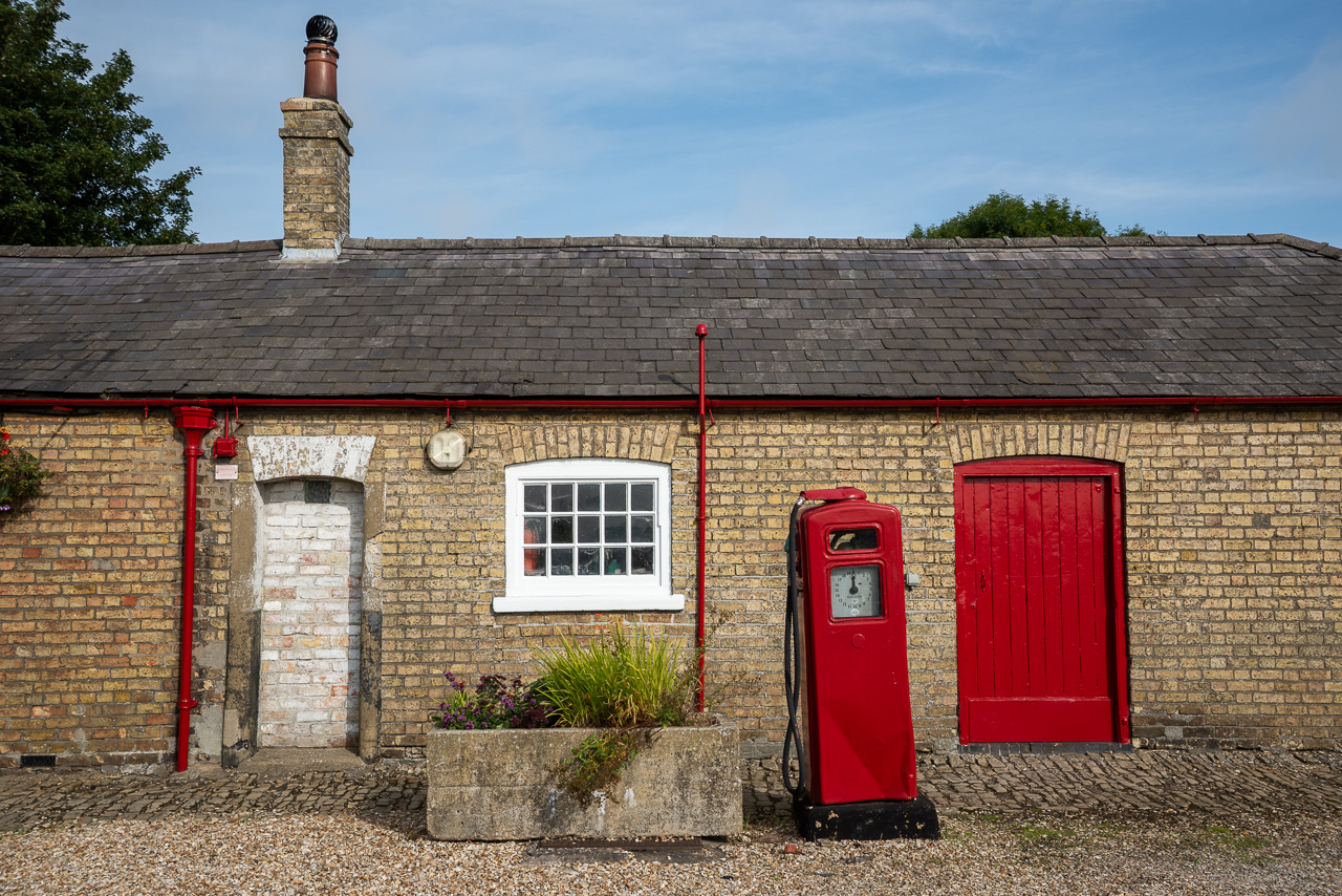 Disused Lincolnshire garage with old fashioned petrol pump
