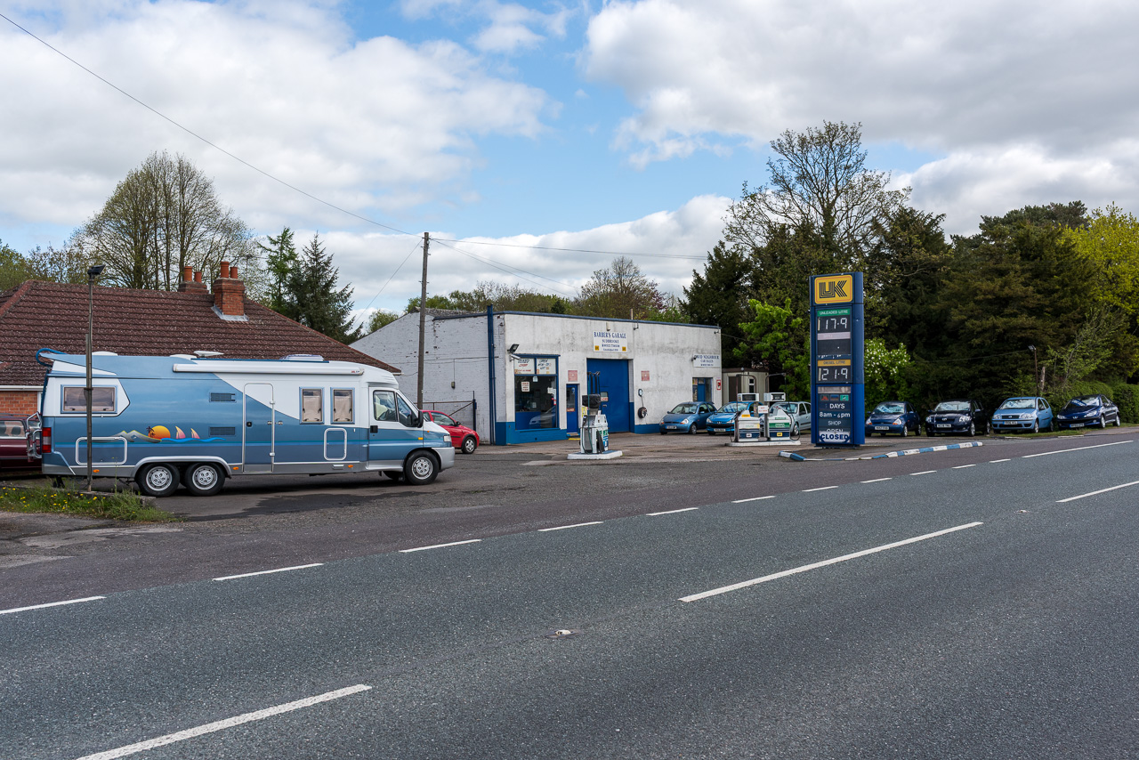 Roadside Lincolnshire garage with parked caravan